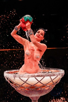 Dita Von Teese zamyka pokaz mody Alexis Mabille Haute-Couture jesień-zima 2024/2025 podczas Tygodnia Mody w Paryżu