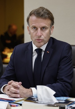 Le président Emmanuel Macron assiste à une réunion de sécurité nationale sur la crise entre Israël et l'Iran dans la salle Jupiter du palais de l'Élysée à Paris