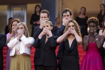 Francis Ford Coppola i Anne-Sophie Lapix w Carlton Cannes, hotelu Regent podczas nagrywania wiadomości z France 2 o 20:00 na marginesie 77. Międzynarodowego Festiwalu Filmowego w Cannes
