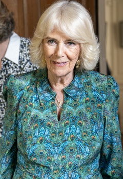 Królowa Camilla otrzymała kwiaty po niespodziewanym pojawieniu się na sesji inauguracyjnej Festiwalu Charleston w Charleston w Anglii, czwartek, 16 maja 2024 r