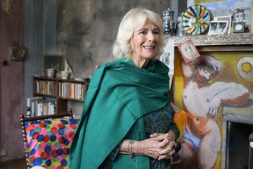 Brytyjska królowa Camilla ogląda studio w Charleston House po niespodziewanym występie na sesji otwierającej festiwal Charleston w Charleston w Anglii, czwartek, 16 maja