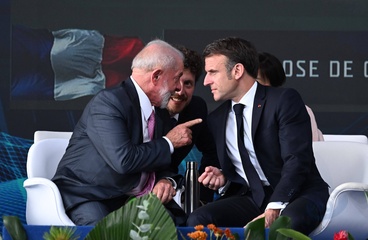 Pierwsza Dama Brazylii, Rosangela da Silva Prezydent Francji i prezydent Brazylii przybywają do bazy łodzi podwodnych Itaguai w celu zwodowania łodzi podwodnej Tonelero