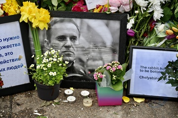 Hołd dla Alexeja Navalnego przed ambasadą Rosji w Londynie.