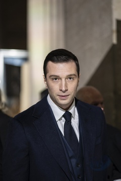 Premier Francji Gabriel Attal podczas konferencji prasowej na temat strajkow rolnikow.