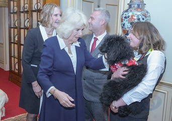krolowa Camilla spotkała się z klientami posiadającymi psy asystujące przy leczeniu medycznym, przeszkolone przez MDD w celu ostrzegania ich w przypadku zbliżającego się niebezpieczeństwa.