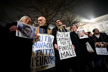 wiec ku pamięci przywódcy rosyjskiej opozycji Aleksieja Nawalnego w Mediolanie, Włochy – 19 lutego 2024 r.