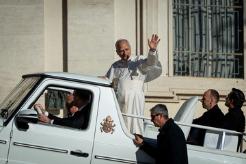Pope Leo XIV leads his traditional Wednesday General Audience in St. Peter's Square in Vatican City, Vatican, on 19 November 2025.