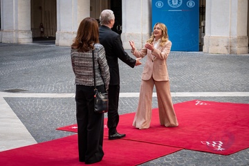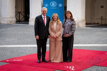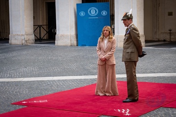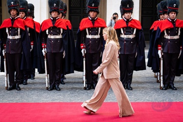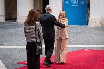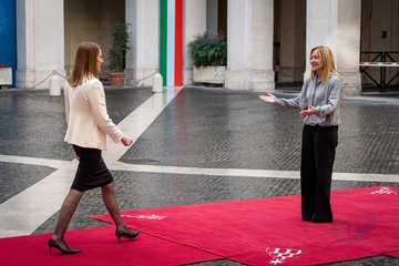 Italian Prime Minister Giorgia Meloni receives the Prime Minister of the Republic of Croatia, Andrej Plenković, at Palazzo Chigi in Rome, Italy, on 19 November 2025.
