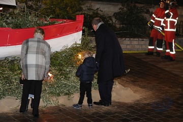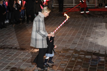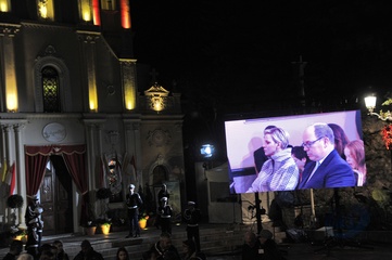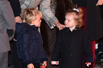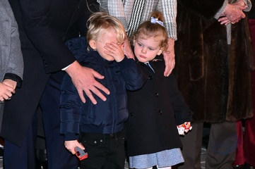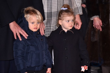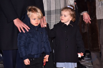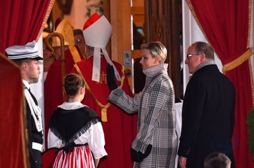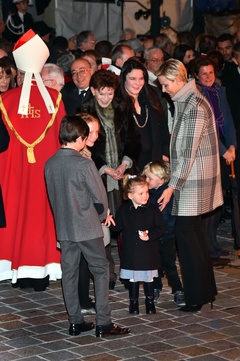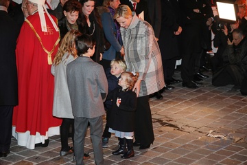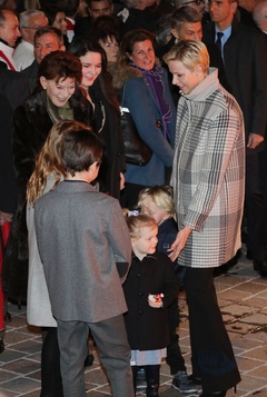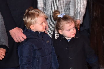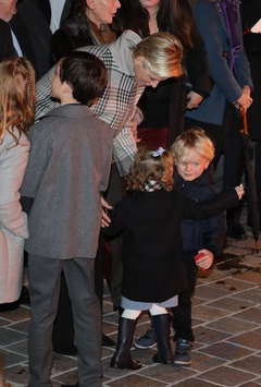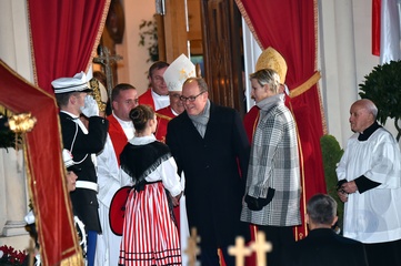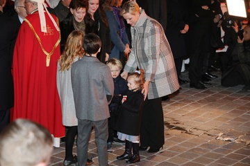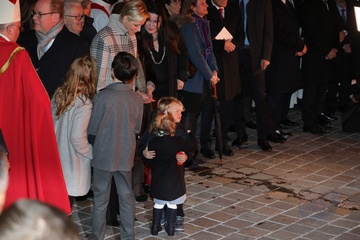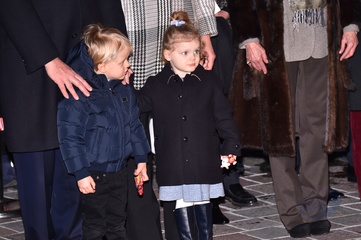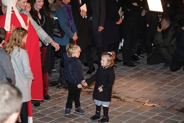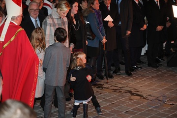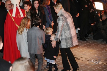 Ksiaze Albert i ksiezna Charlene z dziecmi na ceremonii - Sainte Devote