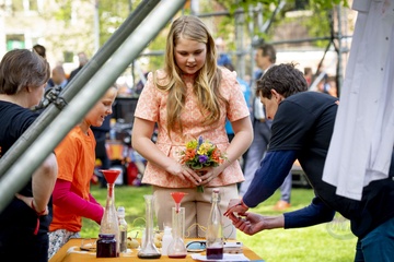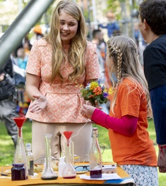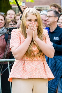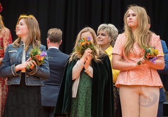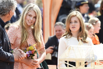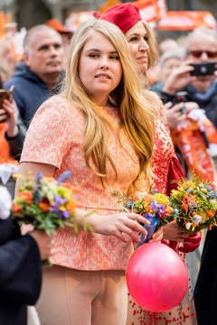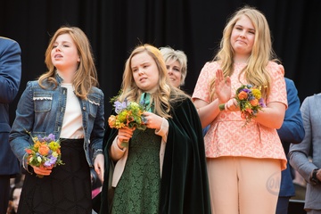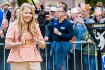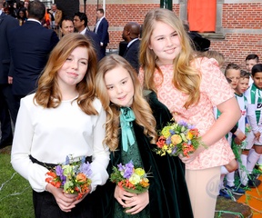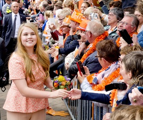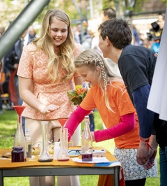 Krol Holandii z zona i corkami na Kings Day w Groningen