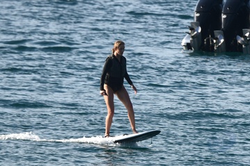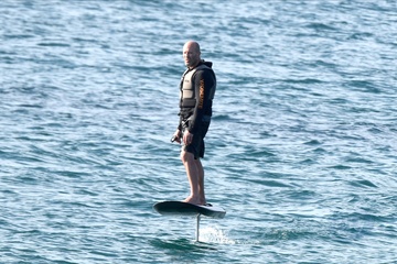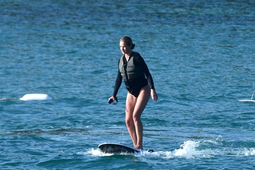 Exclusif - Prix spécial - No Web - Exclusif - Prix spécial - No Web - Jason Statham et sa compagne Rosie Huntington-Whiteley s'essaient à la planche volante ou foil électrique lors de leurs vacances à Phuket, Thaïlande