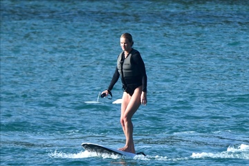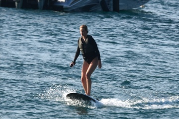 Exclusif - Prix spécial - No Web - Exclusif - Prix spécial - No Web - Jason Statham et sa compagne Rosie Huntington-Whiteley s'essaient à la planche volante ou foil électrique lors de leurs vacances à Phuket, Thaïlande 123