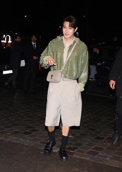 Arrivées des personnalités au défilé AMI collection homme automne/hiver 2024/2025 lors de la fashion week à Paris (PFW)