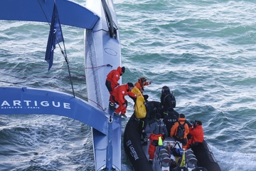 Atmosfera przed startem samodzielnego wyścigu dookoła świata „The Arkéa Ultim Challenge”.