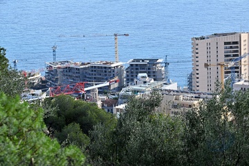Widok na plac budowy infrastruktury morskiej pod przyszłą rozbudowę, znaną jako Anse du Portier, w Monako