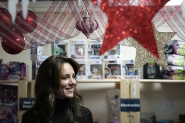 Kate Biancą Sakol założycielka Sebby's Corner zapewniajaca wsparcie rodzinom ogląda sprzęt i zabawki podczas jej wizyty w Sebby's Corner w północnym Londynie