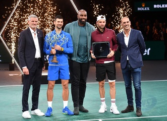 Novak Djokovic remporte la demi-finale de l'Open Rolex Paris Masters à l'Accor Arena contre Andrey Rublev