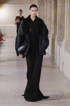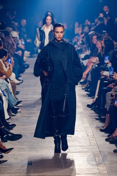 Irina Shayk w czerni i w mrocznym makijazu wraca z pokazu Westwood