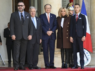Krol Mohammed VI z Maroka, Antonio Guterres, Jim Yong Kim, Brigitte Macron, ksiaze Hassan