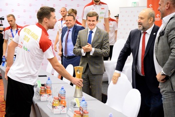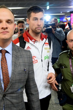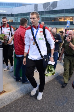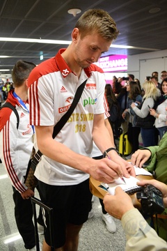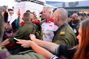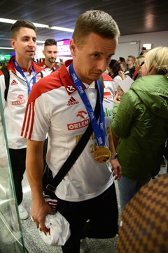 Mistrzowie Swiata w siatkowce na lotnisku w Warszawie