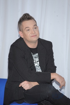 polskie program tv show scena mezczyzna sylwetka czarne buty kozaki gest dlugi plaszcz granatowy polyskujacy publicznosc