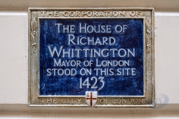 Plaques outside St Michael's Church Paternoster Royal, in college Hill , marking the location of Dick whittington in the City of London , london, UK.