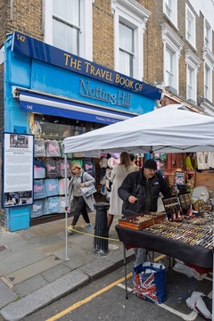 Filming location at Portobello Road market, Notting Hill, London,UK
