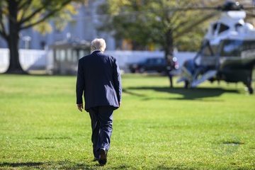 President Donald Trump boards Air Force One at Joint Base Andrews