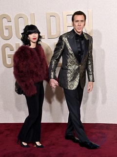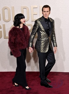 Nicolas Cage and Riko Shibata - Golden Globe Awards 2024 - Arrivals (Nicolas Cage and Riko Shibata)