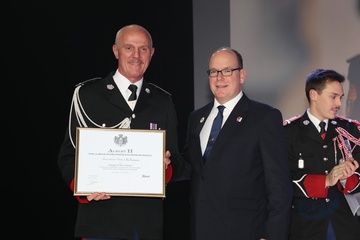 Monakijska rodzina ksiazeca na ceremonii 200. rocznicy Compagnie des Carabiniers