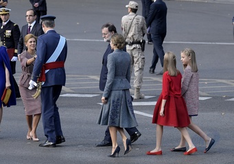 Hiszpanska rodzina krolewska na paradzie militarnej