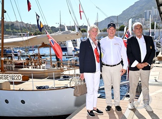 Le prince Albert II de Monaco a fait un passage au Yacht Club de Monaco dans le cadre de la Monaco Classic Week, en compagne de la navigatrice Catherine Chabaud