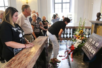 Brigitte Macron i pierwsza dama Rumunii Carmen Lohannis zwiedzaja Palac Cotroceni