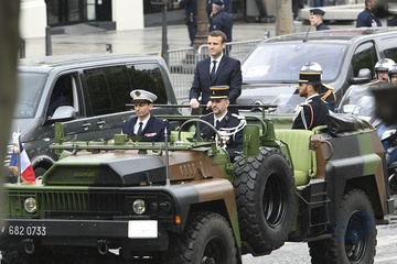 Emmanuel Macron oddal hold nieznanym zolnierzom przy Luku Triumfalnym