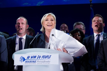 Marine Le Pen podczas wieczoru wyborczego