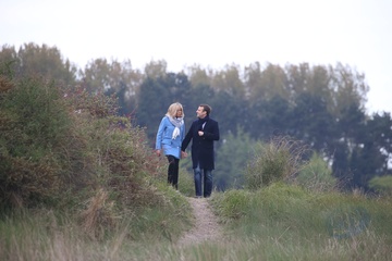 Emmanuel Macron z zona na spacerze