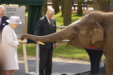 Krolowa Elzbieta II i ksiaze Filip w ZOO na otwarciu centrum dla sloni