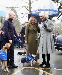 Ksiezna Camilla ze swoim pieskiem w schronisku dla psow i kotow