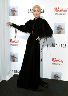 Lady Gaga w czarnej sukni z bufiastymi rekawami