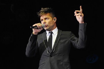 Ricky Martin w garniturze i krawacie na koncercie w Londynie