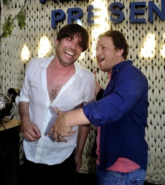 Jamie Oliver jako dj podczas The Big Feastival at Alex James' Farm