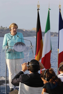 Spotkanie politykow we Wloszech - Premier Wloch, kanclerz Niemiec i prezydent Francji