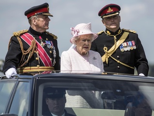 Krolowa Elzbieta podczas przegladu Krolewskiej Artylerii w obozie Larkhill