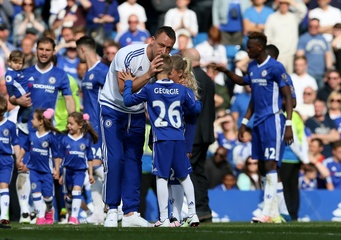 Kapitan Chelsea John Terry po meczu caluje swoje dzieci