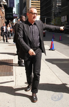 Tom Hanks gestykuluje w drodze do The Late Show