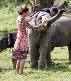 Ksiaze William i ksiezna Kate karmia male nosorozce i slonie - wizyta w Indiach
