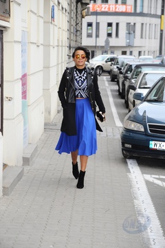 Alesha Dixon w czarnej, skorzanej sukience i bialej bluzce