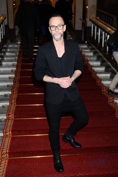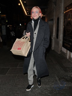 Cate Blanchett w meskim plaszczu i garniturze