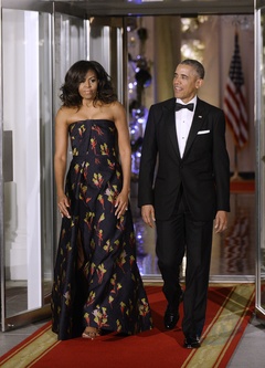 Obamowie i premier Kanady z zona na przyjeciu w Bialym Domu