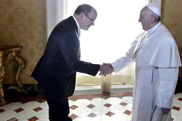 Ksiaze Albert II z zona Charlene spotkali sie z papiezem